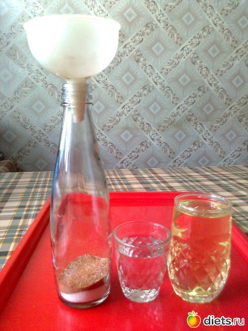 Приготовим бутылочку, в которой и будем хранить нашу заправку. Вначале засыпаем всё сыпучее.