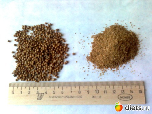 Так выглядит кинза (кориандр) в семенах и уже молотый. Если нет возможности купить готовую молотую кинзу. Купите в семенном магазине семена кориандра, слегка обжарить на сухой сковороде и перемолоть в кофемолке.