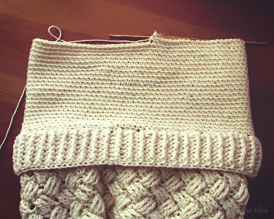 Далее вяжем по спирали за заднюю полупетлю СБН пред. ряда (так подкладка получается тоненькой, но плотной).
