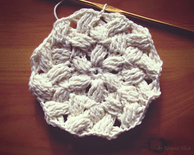 3 ряд: *4 ВП подъема, 2 СС2Н во 2-ой и 3-ий СС2Н пред. ряда, 3 СС2Н в послед.3 СС2Н пред. ряда ( ВАЖНО!крючок вводим перед уже провязанными ВП подъема и 2-мя СС2Н), далее делаем прибавку: 3 СС2Н в заднюю полупетлю 4-ого СС2Н пред. ряда, 3СС2Н в заднюю полупетлю 3-его СС2Н пред. ряда, вводя крючок перед провязанными 3-мя СС2Н - в общем, прибавляем раппорт в середине раппорта пред. ряда :), пропускаем 3 СС2Н пред. ряда,