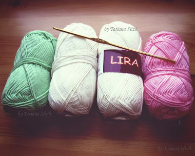 Вам потребуется: пряжа (100 % акрила) - 5 г розовой, 5 г салатовой, 5 г зеленой; крючок № 1,5.