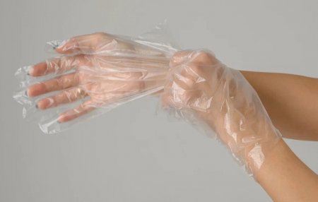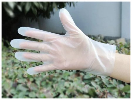 Самый доступный вариант – полиэтиленовые изделия. Их легко узнать по свободной посадке и универсальной форме для обеих рук. Они защищают от влаги, жира и загрязнений, но почти не подходят для точных действий из-за слабого облегания кисти. Такие модели выбирают для фасовки, сервировки, краткого взаимодействия с продуктами или бытовых задач. Для продолжительной носки они неудобны: рука быстро нагревается, а сам материал легко повреждается при контакте с острыми предметами.