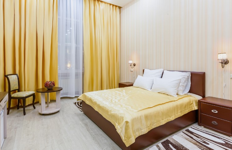 Номерной фонд отеля состоит из 160 номеров разных категорий и стоимости: стандарт, комфорт, улучшенный и люкс. Во всех номерах есть собственный санузел и кондиционер. На сайте гостиницы вы можете посмотреть фото номеров и забронировать тот, который больше всего понравится.