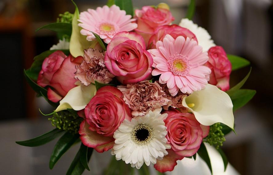 Цветовая гамма официального букета должна быть белого, розового, светло-желтого, светло-зеленого и светло-сиреневого цветов. В помещении, где нет возможности поставить цветы в вазу, лучше дарить аранжированную композицию в оазисе.